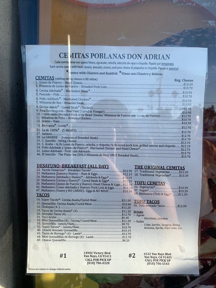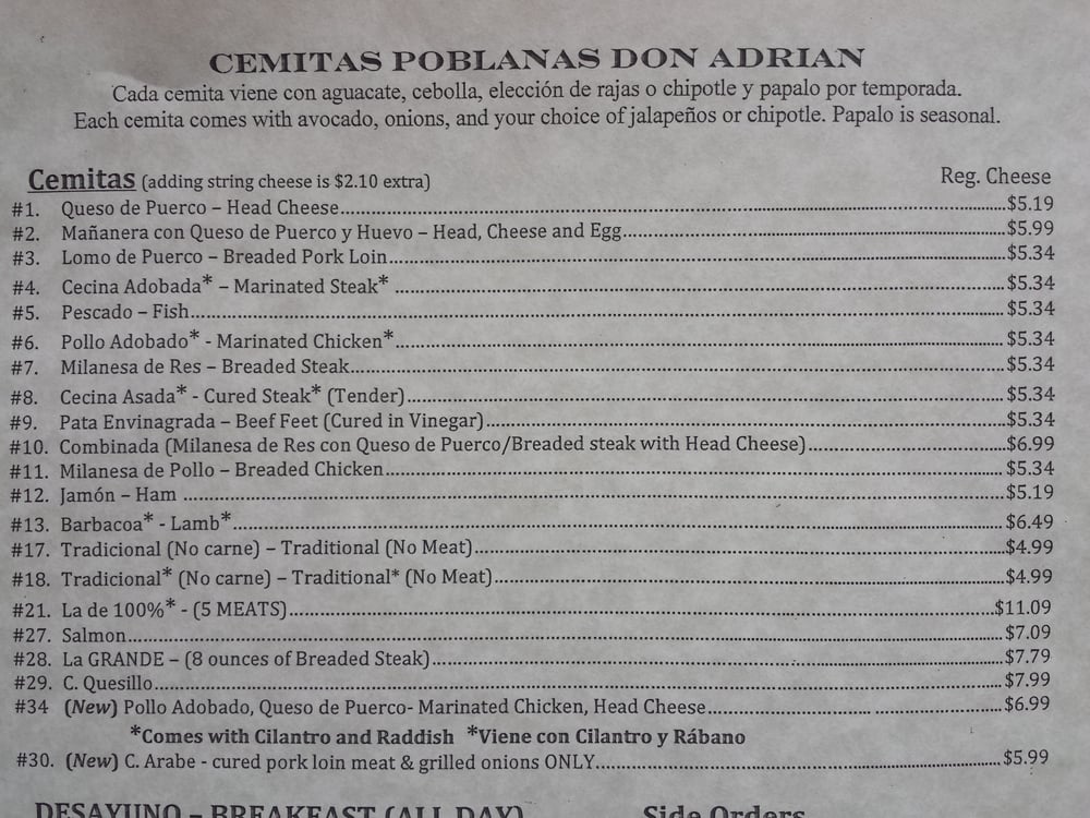 Cemitas Poblanas Don Adrian Menu